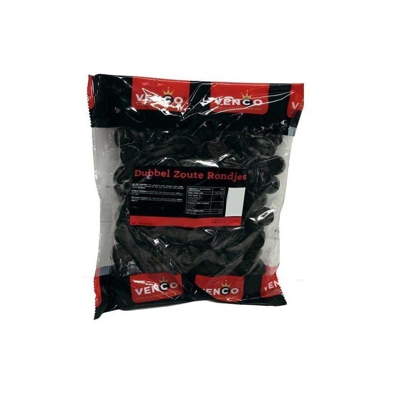 Licorice in 1 KiloBag 2.2lb - Venco Dubbelzoute Rondjes DZ(Double Salt Round Licorice)