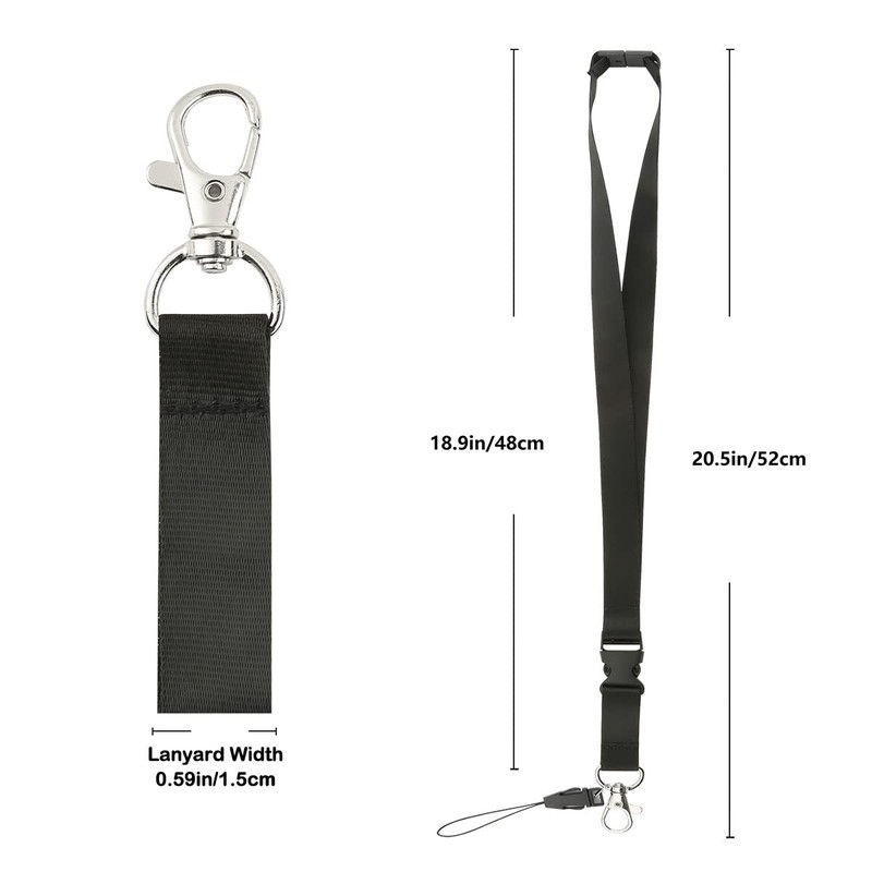 - You will receive: Packaging includes: 2 Pcs black neck lanyard. Lanyard with a aircraft buckle and metal lobster clip; Neck strap is 18.9 in/48 cm, Width is 0.59 in/1.5 cm