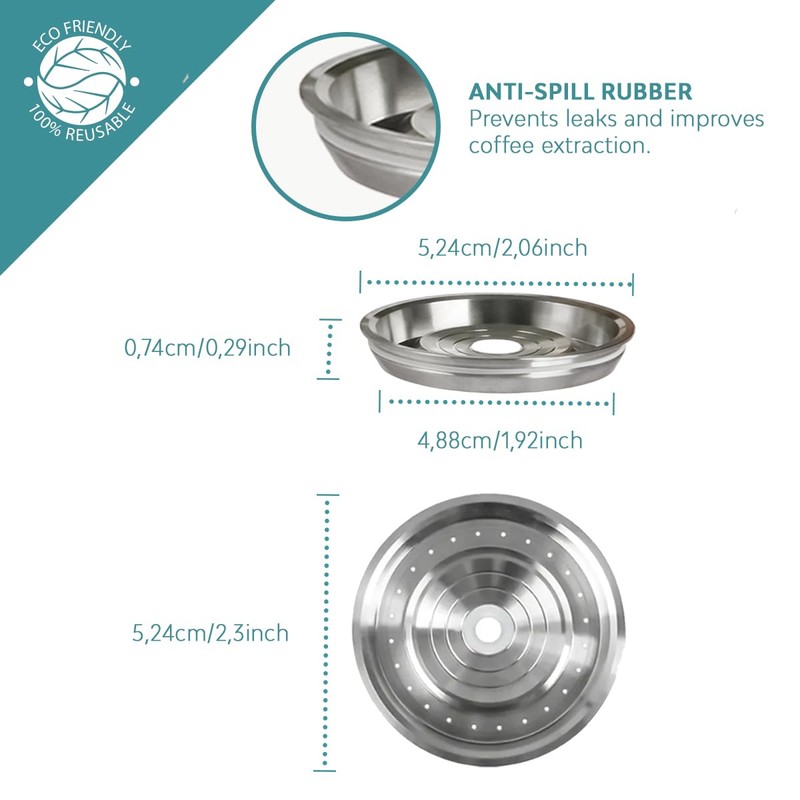 Made from food grade stainless steel, this lid is sturdy, secure and durable, unlike silicone options that can wear out over time. Its design allows you to maintain the proper pressure inside the capsule, improving extraction and enhancing the taste and aroma of the coffee.