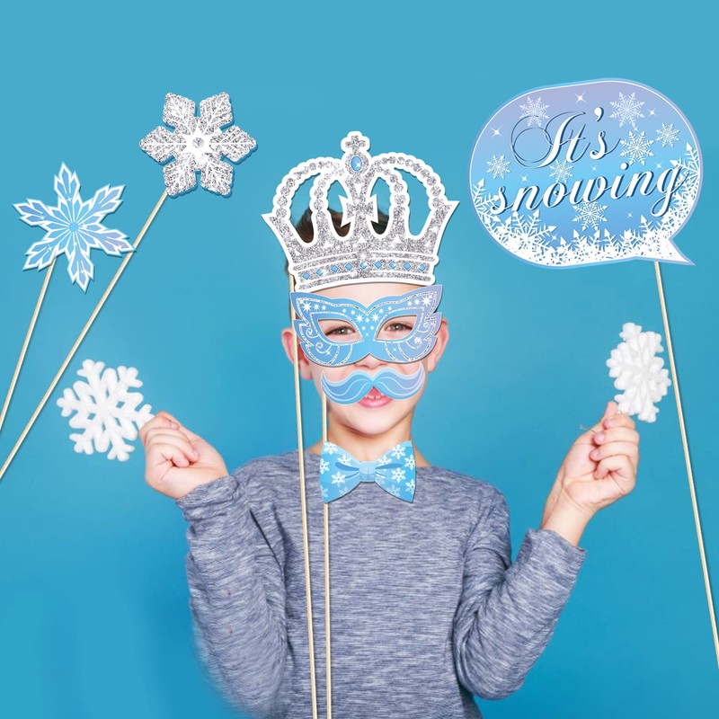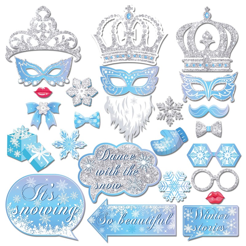 - Winter Wonderland Party Decorations: These Winter Photo Booth Props including hat, Glasses, Crown, bow, beard etc. fun snowflake holiday party and winter wedding Photo Booth Props, great for winter wonderland party photos to share. Each design is unique and very cute, enough quantity to satisfy your photo and decorative needs.