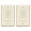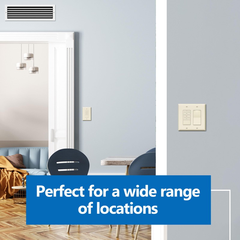 - 2 pack; light almond color; NEUTRAL WIRE REQUIRED, ground wire required; 120VAC 60Hz, 1200W, 15A, 1200VA, 1/2HP motor; operating temperature 32°F to 131°F; UL listed; 1-year warranty; WALL PLATES INCLUDED