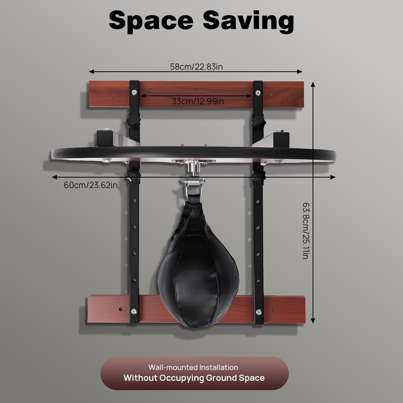 A good piece of fitness equipment can help you have a good figure and a healthy body. This speed bag platform kit adopts high-quality materials and exquisite craftsmanship to ensure good performance. The wall-mounted design saves more space. The premium speed bag can rotate flexibly 360 °, helping you exercise your arm muscles and shoulders, improve hand-eye coordination, and achieve lightning-fast punching speed.