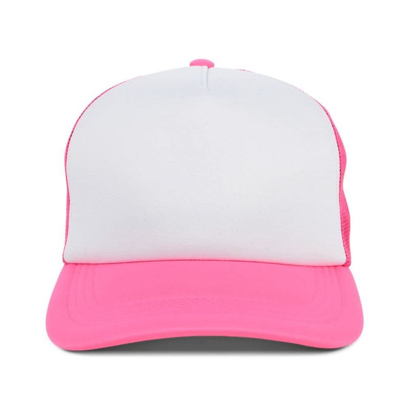 Lids Blank Basic Foam Trucker Adjustable Snapback Hat, White/Neon Pink, One Size