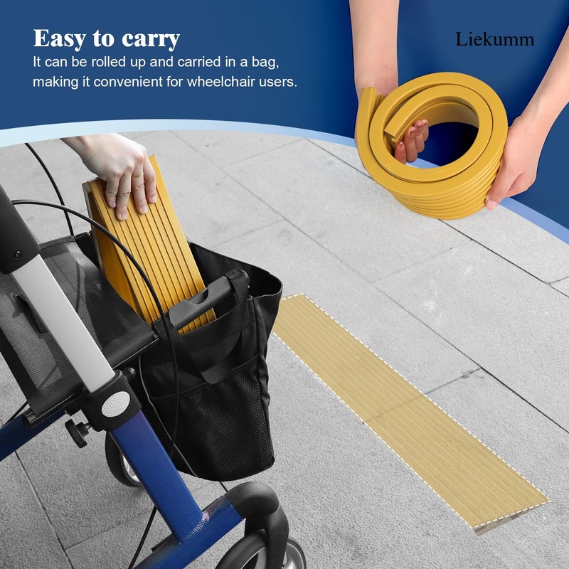 - 【Durable PVC Material】Our door ramps for wheelchairs are made from high density PVC material. When you get our ramps, you will find that our ramps are very flexible and soft, also, it's very easy to clean up. Specially, our threshold ramps are with no irritating odor.
