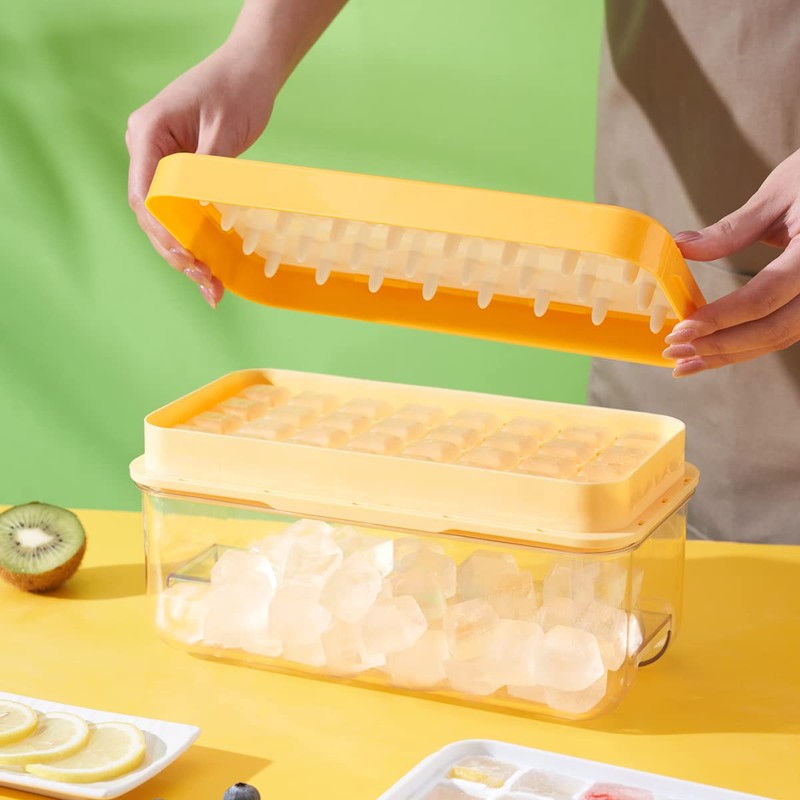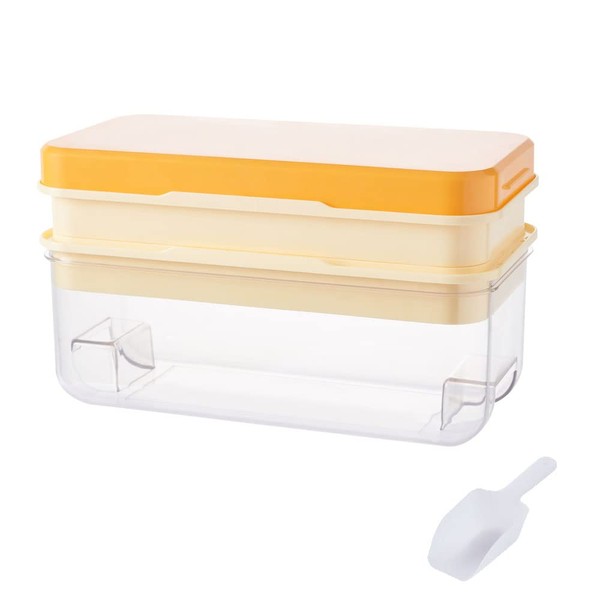 Lielisks Upgrade Multi-trays Silicone Ice Cube Trays for Freezer with Lid and Bin, Ice Cube Storage Container Set, Easy to Release Ice Cube in 1 second Yellow 2 trays