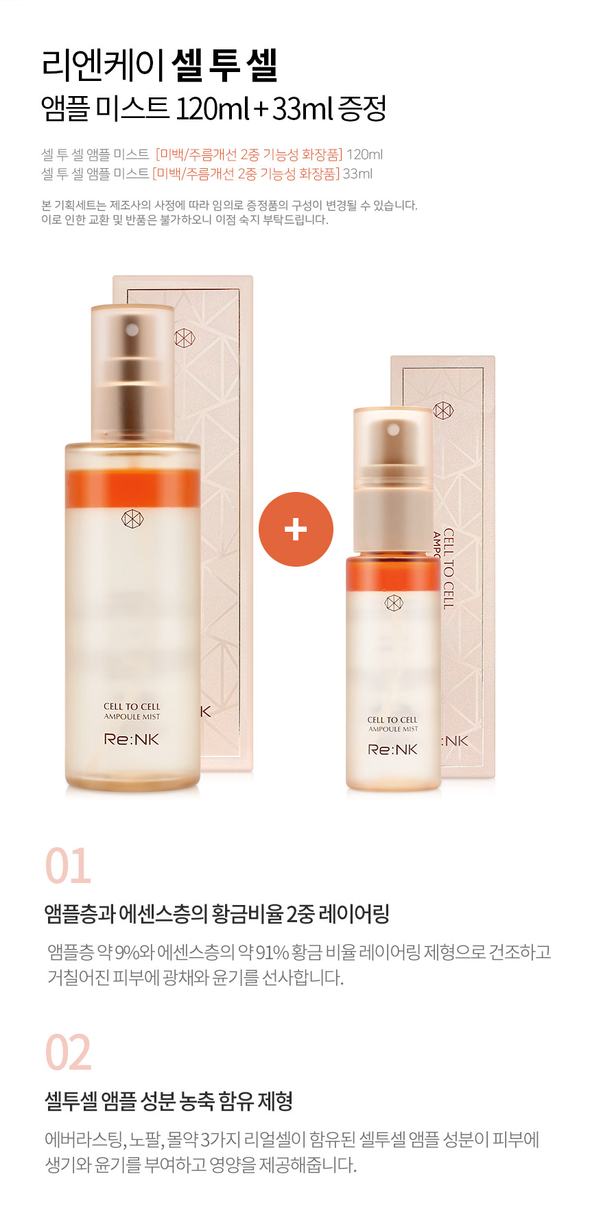 리엔케이 셀 투 셀 앰플 미스트 120ml + 33ml