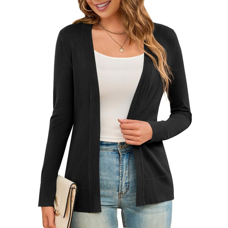 LIENRIDY Women's Cardigans Lightweight Long Sleeve Open Front Sweater Cardigan Black M