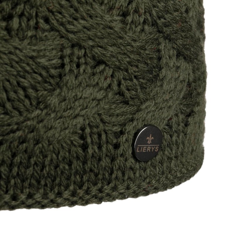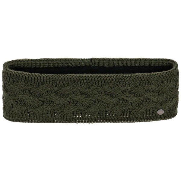 Lierys Fauske Women's Headband with Virgin Wool 55-60 cm - Made in Germany - 10.5 cm Wide - Fleece Lining - Headband with Braided Knitting Pattern - Autumn/Winter Olive One Size