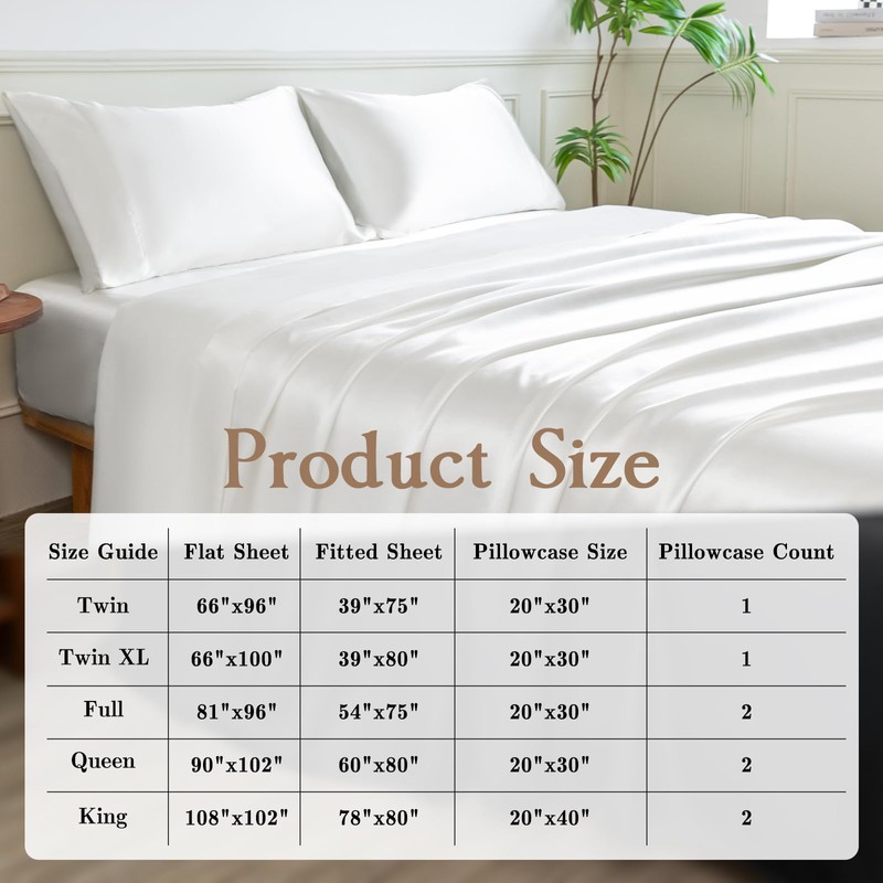 - 【Queen Bed Sheets Set 4 Pcs】:Our package includes 1 Flat Sheet: 90"x 102", 1 Fitted Sheet: 60"x 80" + 15" Deep Pocket, 2 Pillowcases: 20"x 30".