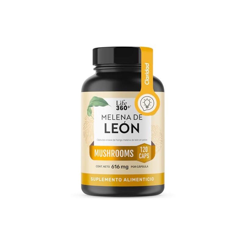 LIFE 360+ Hongo Melena de León Puro | 120 Cápsulas 1232 mg por porción | Cápsulas a Base de Hongo Melena de León (Hericium Erinaceus en Polvo)