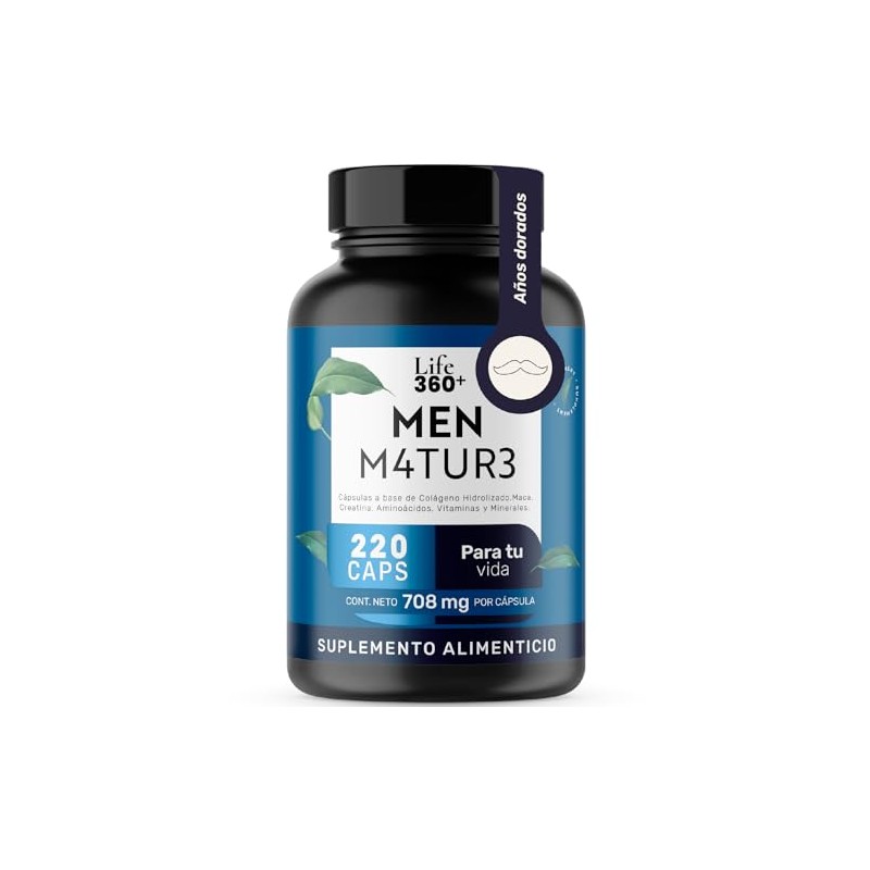 LIFE 360+ - LIFE 360+ Men M4TUR3 | 220 cápsulas | Cápsulas a base de colágeno hidrolizado, maca, creatina, aminoácidos, vitaminas y minerales | Suplemento Alimenticio | Cápsulas de gelatina y agua. ⭐ Calidad premium certificada con excelentes reseñas. Tecnología avanzada y rendimiento superior. 🔥 Alta demanda - Stock limitado. Ideal para quienes buscan lo mejor en calidad y estilo. Producto auténtico con satisfacción total asegurada. ¡No te quedes sin el tuyo y aprovecha esta oportunidad única!