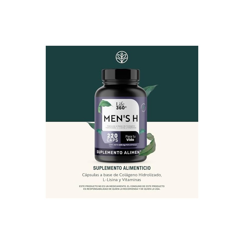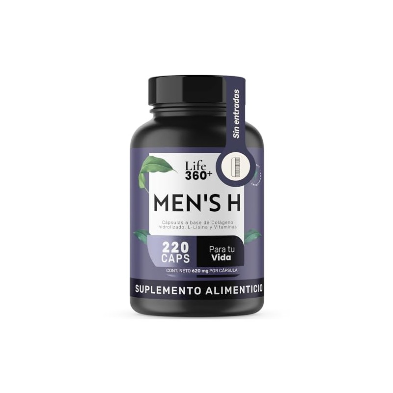 🌟 ⭐ LIFE 360+ Men's H | 220 Cápsulas | Colágeno Hidrolizado, Vitamina B7 (Biotina), Vitamina C (Ácido Ascórbico), Estearato Magnesio, L-Lisina | Suplemento Alimenticio | 220 Cápsulas por Envase ⭐ 🌟