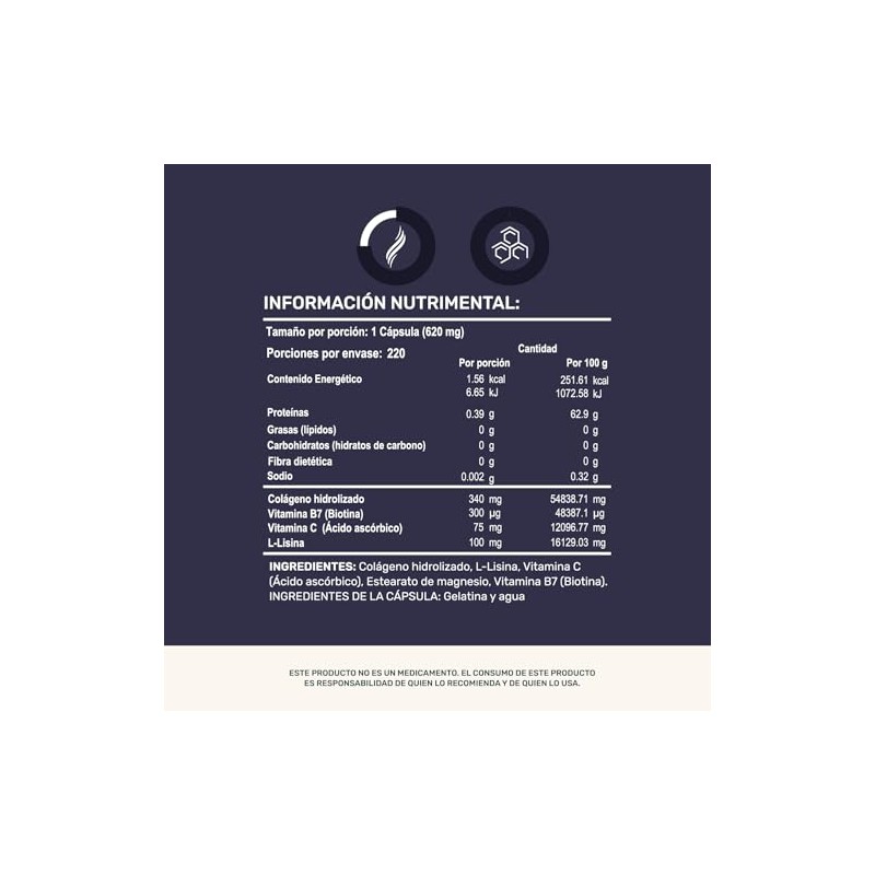 LIFE 360 Mens H 220 Cpsulas Colgeno Hidrolizado, Vitamina B7 (Biotina), Vitamina C (cido Ascrbico), Estearato Magnesio, L-Lisina Suplemento...