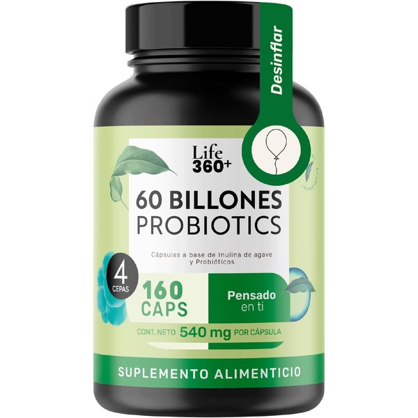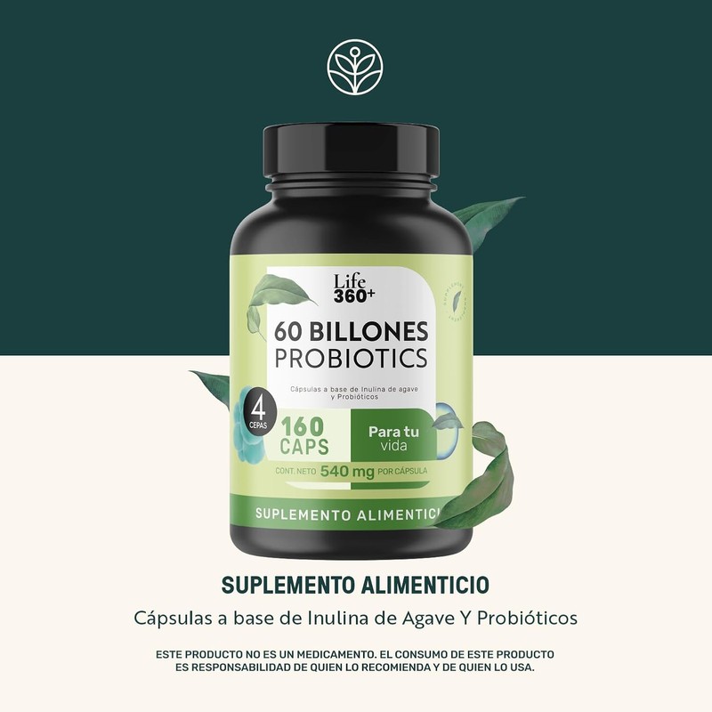 LIFE 360+ 60 Billones Probiotics es un suplemento que combina cuatro cepas de probióticos e inulina de agave. Cada frasco contiene 160 cápsulas. ¡Descubre las ofertas exclusivas en nuestra tienda LIFE 360+!