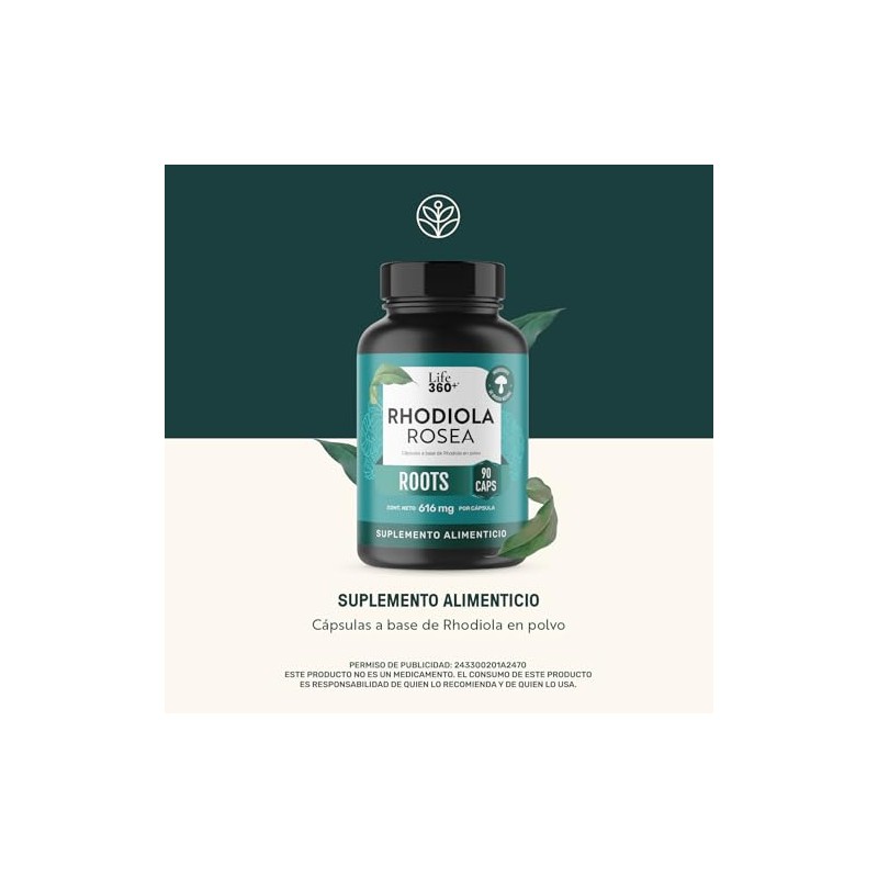 LIFE 360 Rhodiola Rosea 90 Cpsulas 616 mg cu 45 Porciones Suplemento Alimenticio a Base de Raz Rhodiola Rosea en polvo Tomar 2 cpsulas al da
