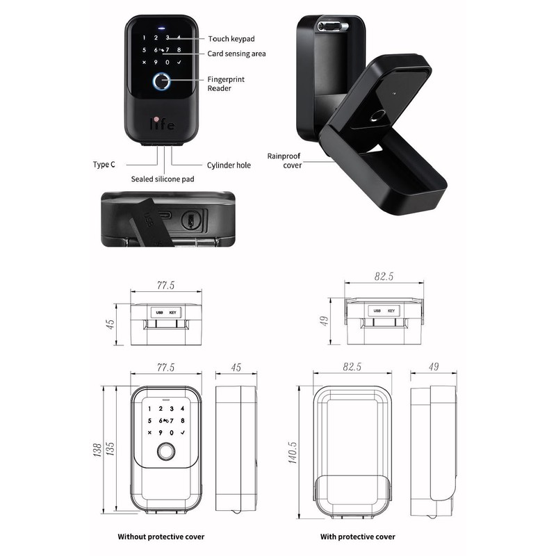 Life 5 in 1 Innovative Smart keyless Padlock Featuring Smart Home apps Compatibility, Strong alluminium Alloy Materials and Waterproof Design. Suitable for Wall Mount or Shackle Usage.