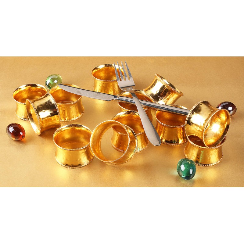 Life By Cotton Everyday Metal Napkin Rings for Wedding Receptions, Dinners Parties, Family Gatherings, Everyday Use - Hand Made by Skilled artisans, Hammered Gold, Set of 6