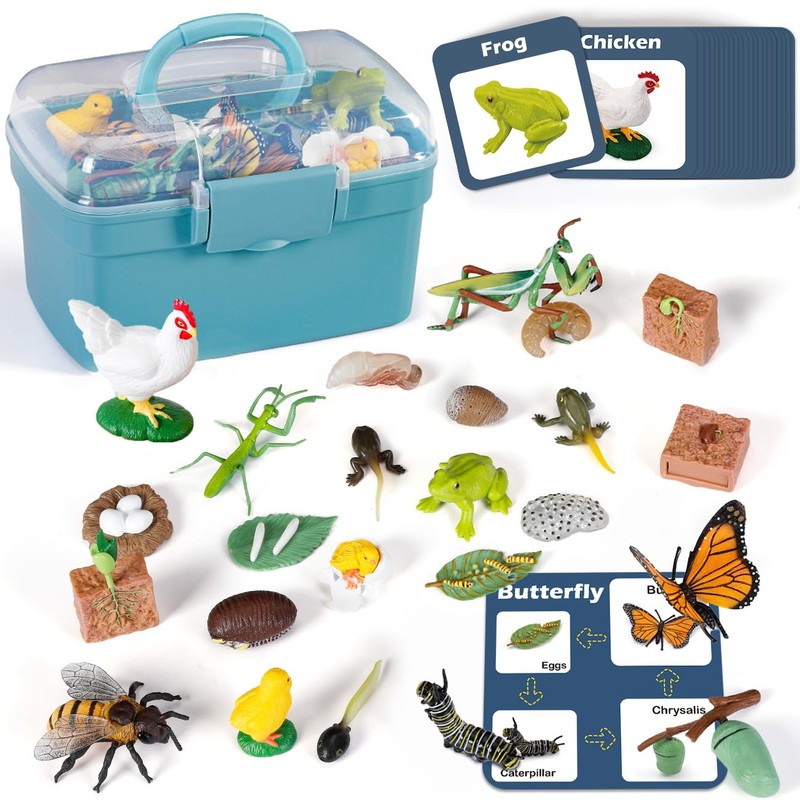 - Vivid and Funny: Their learning is even more meaningful when they can see and touch "figures". 31 guide cards showing each stage of the life cycle, sure kids will love pairing them with 25 little models (6 species). Inspire imaginative play and curiosity!