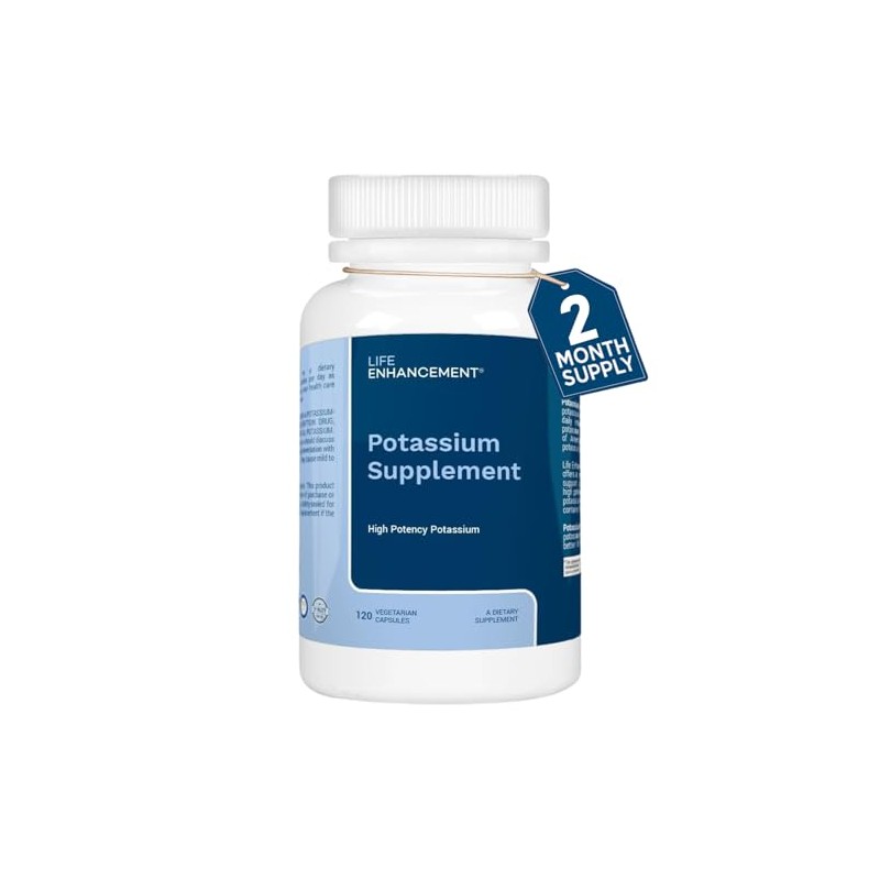 Life Enhancement High Absorption Potassium Supplement for Muscle, Brain & Bone Health - No Additives High Potency Elemental Potassium Supplement, Made in USA (120 Capsules – 60 Servings)