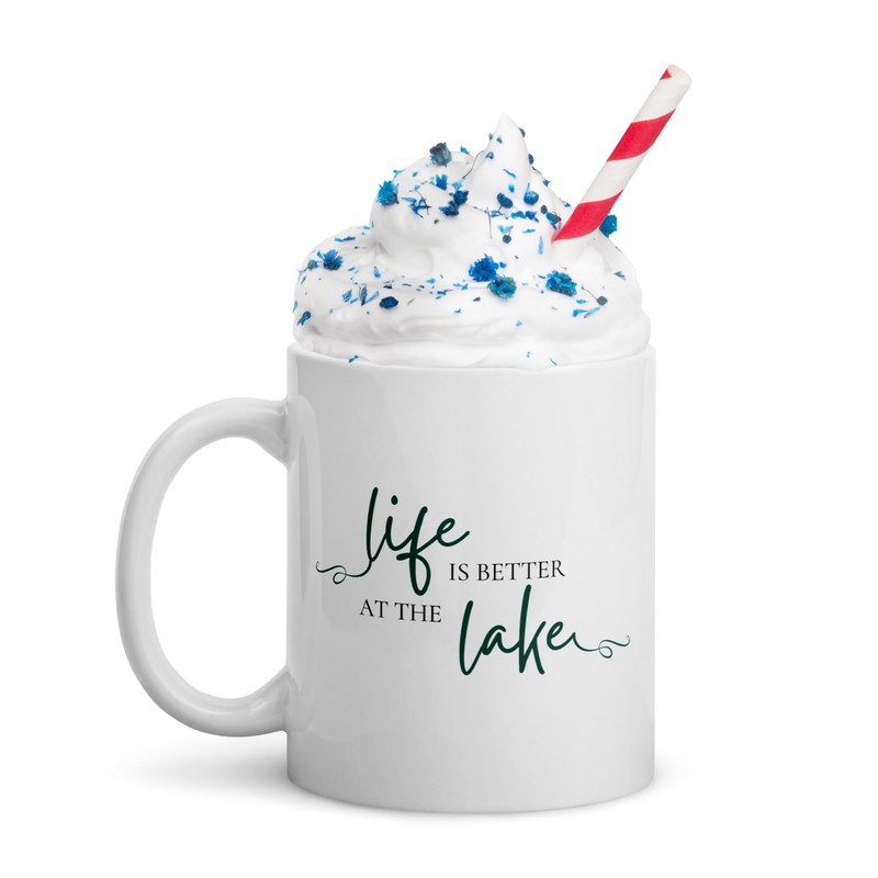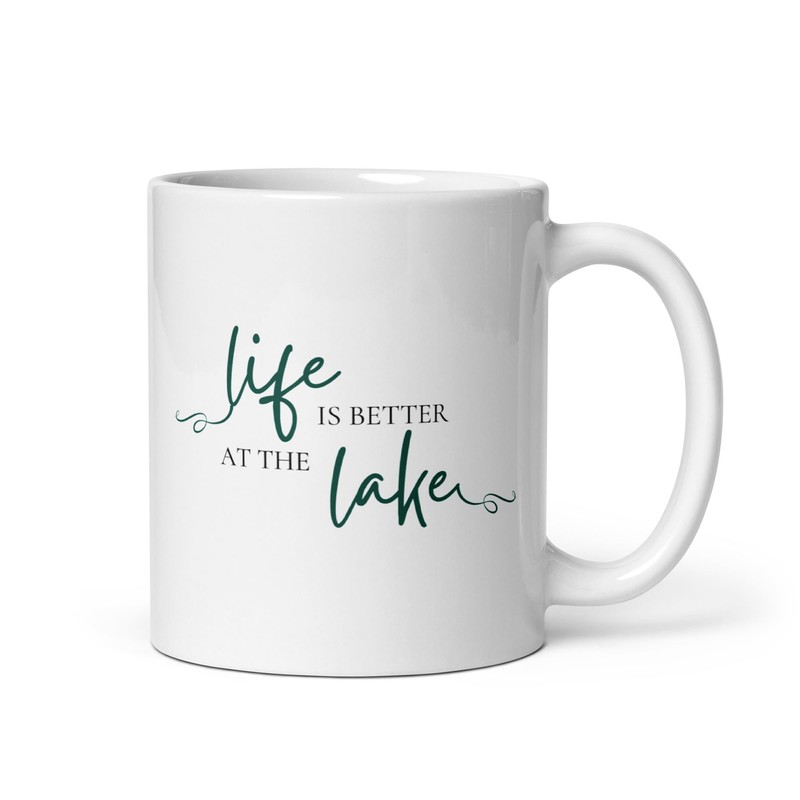 Life is Better at the Lake, Lake House Decor, 11 Oz White Ceramic Mug