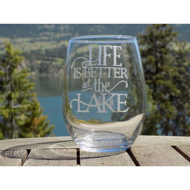 Life is Better at the Lake, Lake House Decor, Set of Two 20oz Etched Wine Glasses