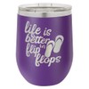 LIFE IS BETTER IN FLIP FLOPS Purple 12 oz Stemless Wine Glass With Lid | Custom Engraved With Funny Quotes and Sayings | Stainless Steel Wine Tumbler | OnlyGifts.com