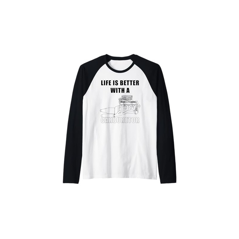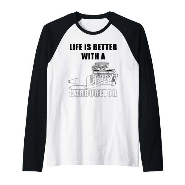 Life is Better With a Carburetor: Car Mechanic Funny Graphic Raglan Baseball Tee
