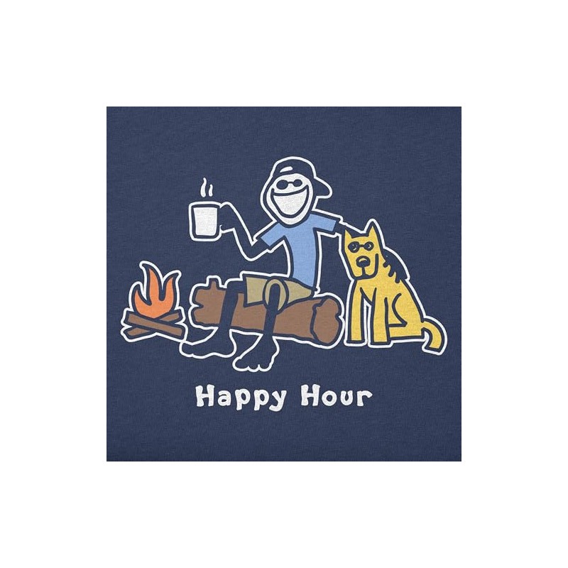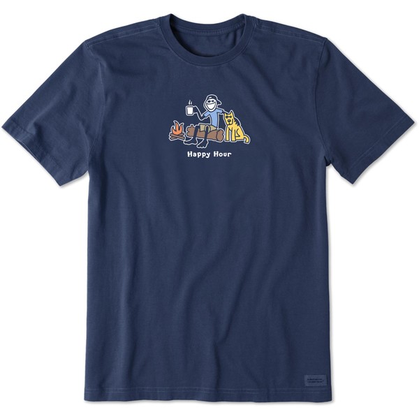 Life is Good Men's Standard Crusher Tee, Short Sleeve Cotton Graphic T-Shirts, Happy Hour, Darkest Blue, Medium