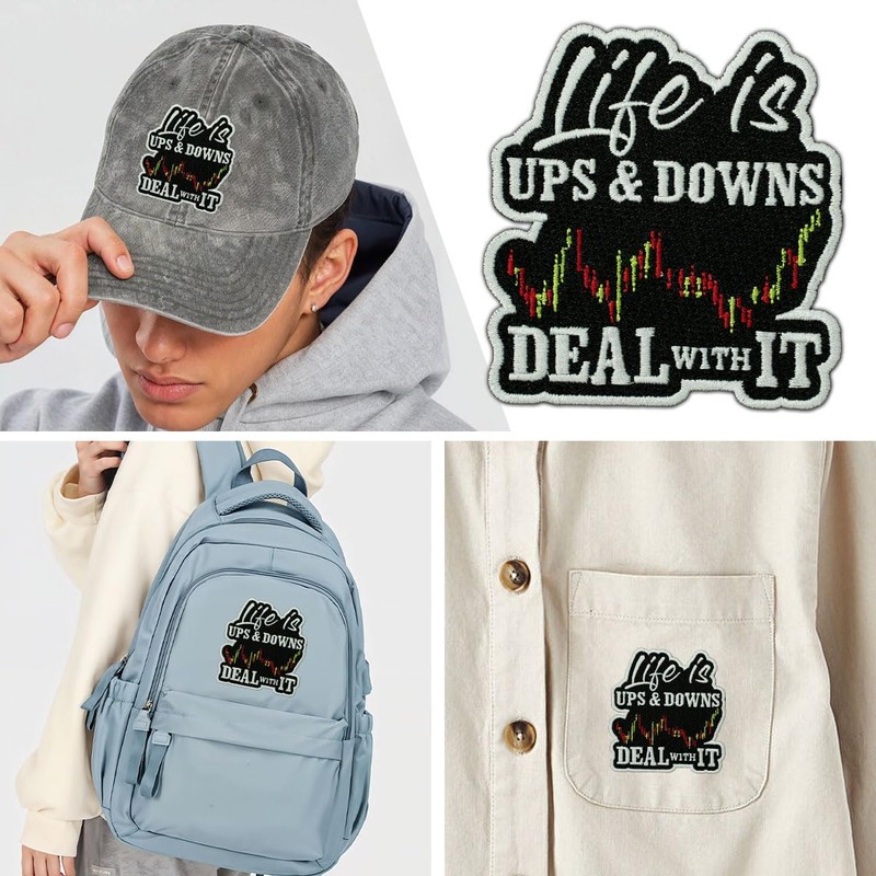 Life is Ups and Downs Deal with It Day Trader Patch Stock & Forex Trading Stock Gift Money Life is Ups and Downs Forex Chart Embroidery Patches for Clothes Backpacks Hats Bags Iron On Embroider 3"