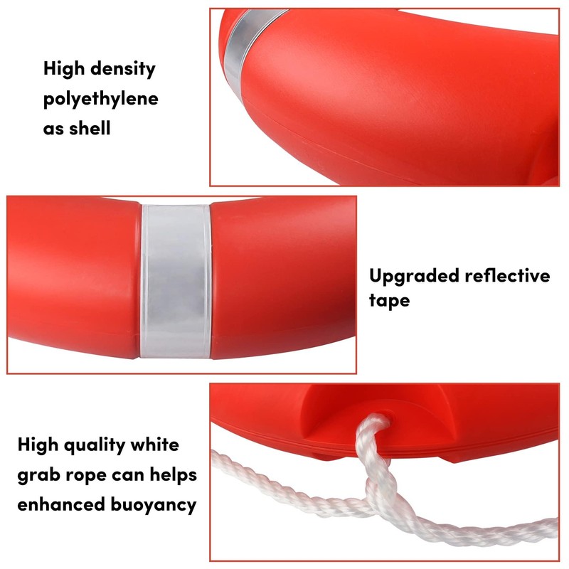 - Durable Safety Material: Life Ring Buoy is made of high-strength polyethylene, filled with polyurethane closed-cell foam, and the hard shell is strong and tear-resistant. The safety factor is higher than that of ordinary inflatable life buoys.The life buoys can withstand extreme weather, suitable for all kinds of ships and docks.