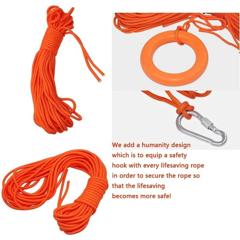 Life Ring Buoy Boat Safety Throw Ring with Water Floating Lifesaving Rope 98.4FT Set, Outdoor Professional Throwable Flotation Device (23in)