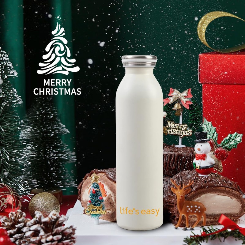Life's Easy 20 oz Stainless Steel Double Wall Vacuum Insulated Water Bottle - Leak Proof Insulated Thermal Bottle for Hot and Cold Drinks (White)