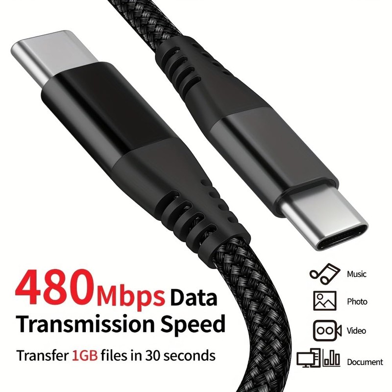 - High-speed charging: Our PD60W USB-C to USB-C cable quickly charge your smartphone, tablet and other USB-C devices so you can get back to work.