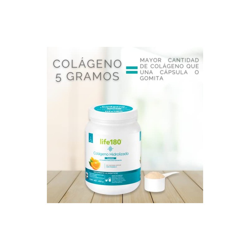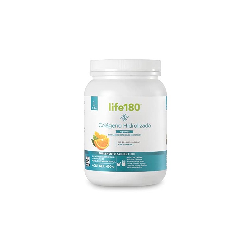 Life180, Colágeno Hidrolizado en Polvo sin Azúcar de 450 gr, 5gr de Colágeno por Porción, 30 Porciones, Péptidos Bioactivos, Adicionado con Vitamina C