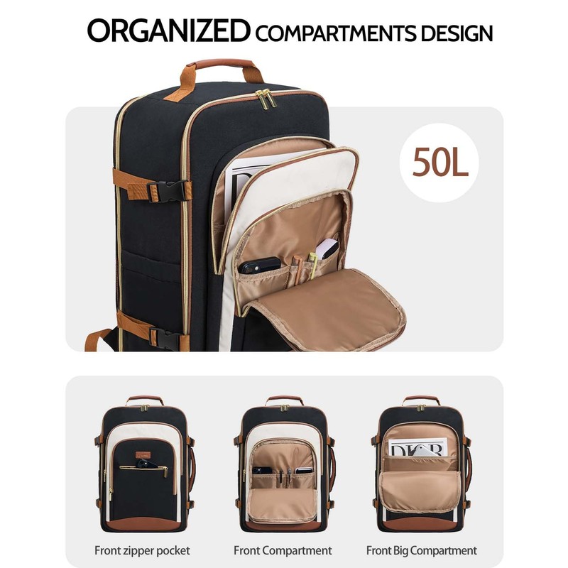 - 【 Airline-Approved Travel Backpack】 This 50L travel backpack fits perfectly as a personal item for airlines, meeting the standard 19.5*14*8 inches size. It’s your ideal carry-on for short trips, weekend getaways, or business travel. Convenient, organized, and hassle-free."