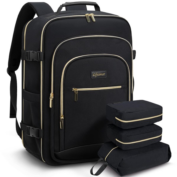 Lifeamar 50L Travel Backpack for Women, Carry On Bag Flight Approved, Waterproof Backpack with 3 Packing Cubes, Weekender Personal Item Bags for Airplane Travel Essentials, TSA Approved