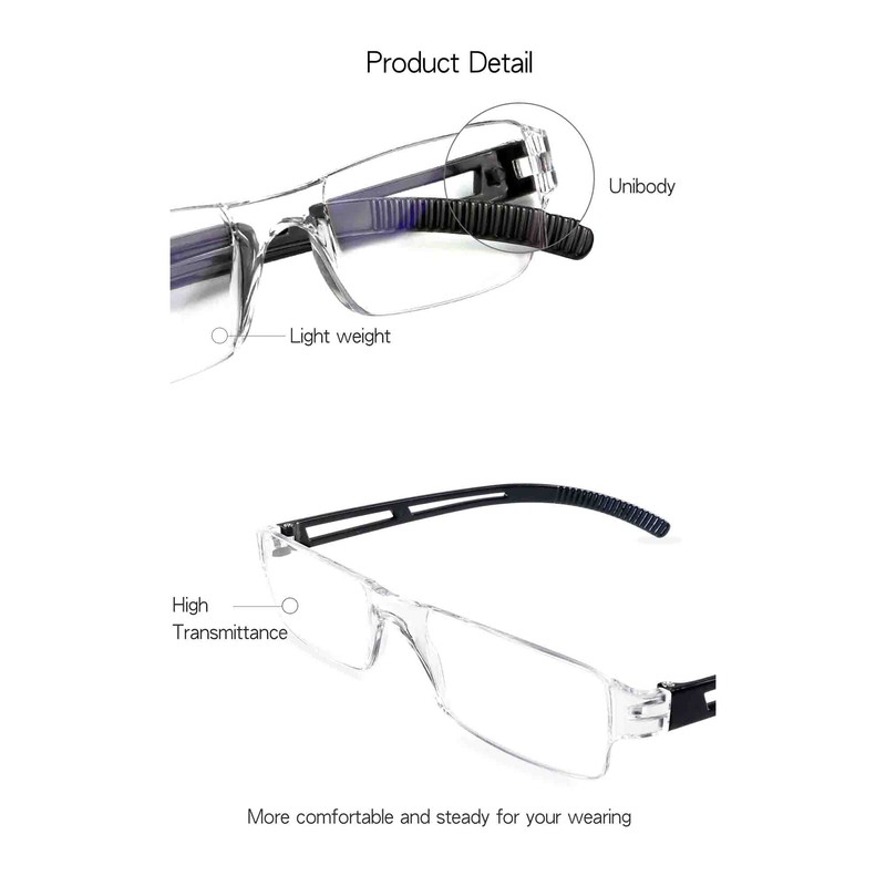 - classic rectangular frame design, ultra-lightweight, universal size fits most face shapes.