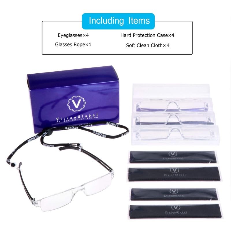 - extremely valuable offer: 4 pairs of unisex rectangular frame reading glasses, a string is included to help you hang the glasses on neck to prevent loss.