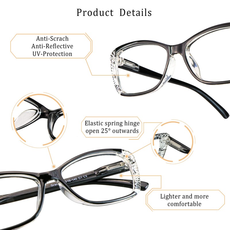 - Ultra-transparent lens with high light transmittance to prevent color distortion, 7-layer anti-reflective coating to minimize glare from digital screens.