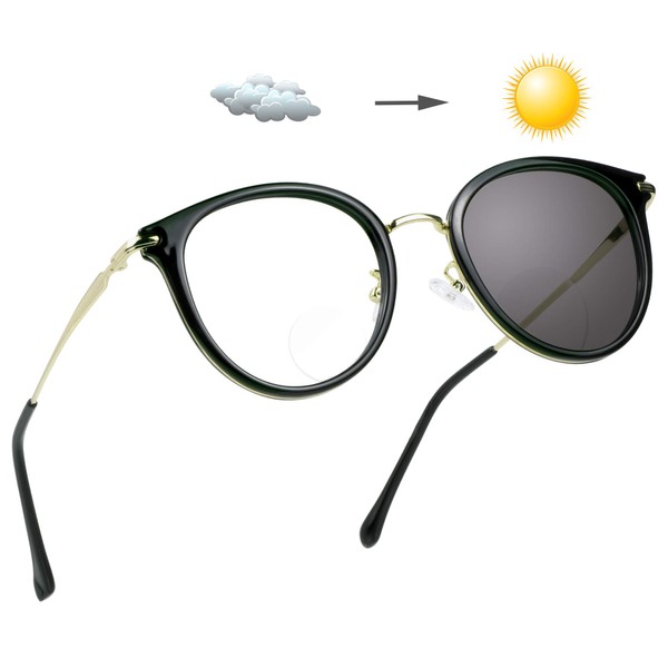 LifeArt Bifocal Reading Glasses, Transition Photochromic Dark Grey Sunglasses, Oval Frame, Computer Reading Glasses, Reduce Glare (Black, +0.00/+2.50 Magnification)
