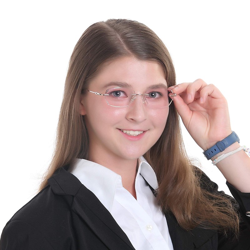 - Classic rimless frame design, ultra-lightweight, no pressure on your face and ears, durable with sturdy alloy frame.