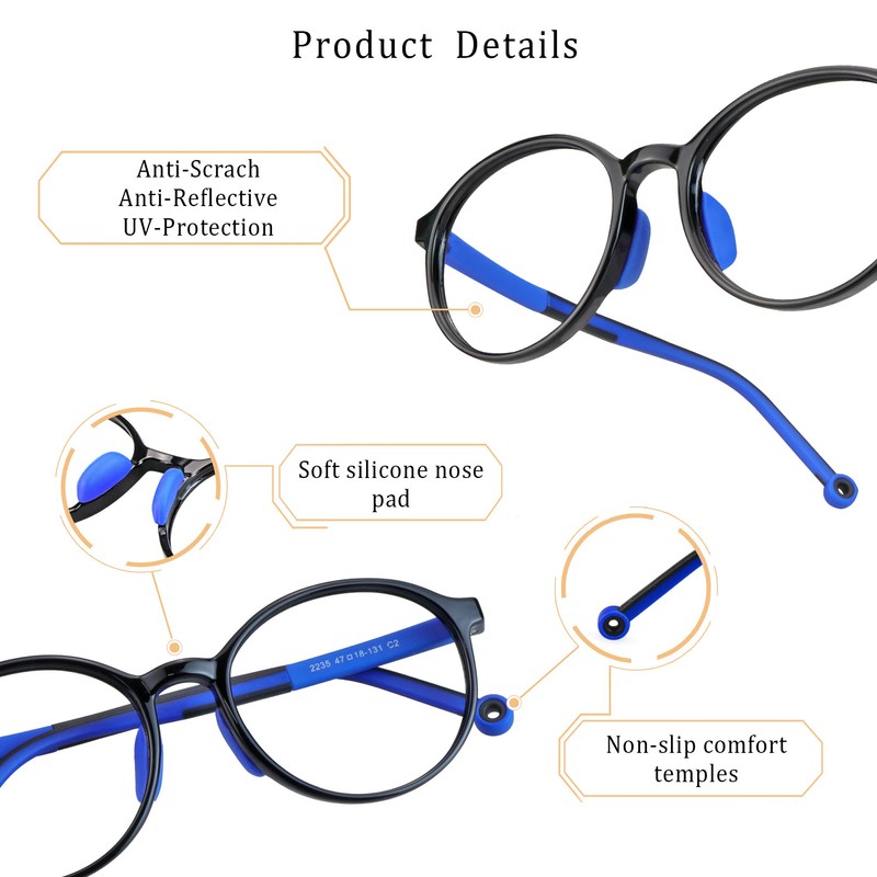- Silicone rubber frames are the most durable, flexible and lightweight material–Nice color is suitable for 3-12 years old, can fully match the characters of children.