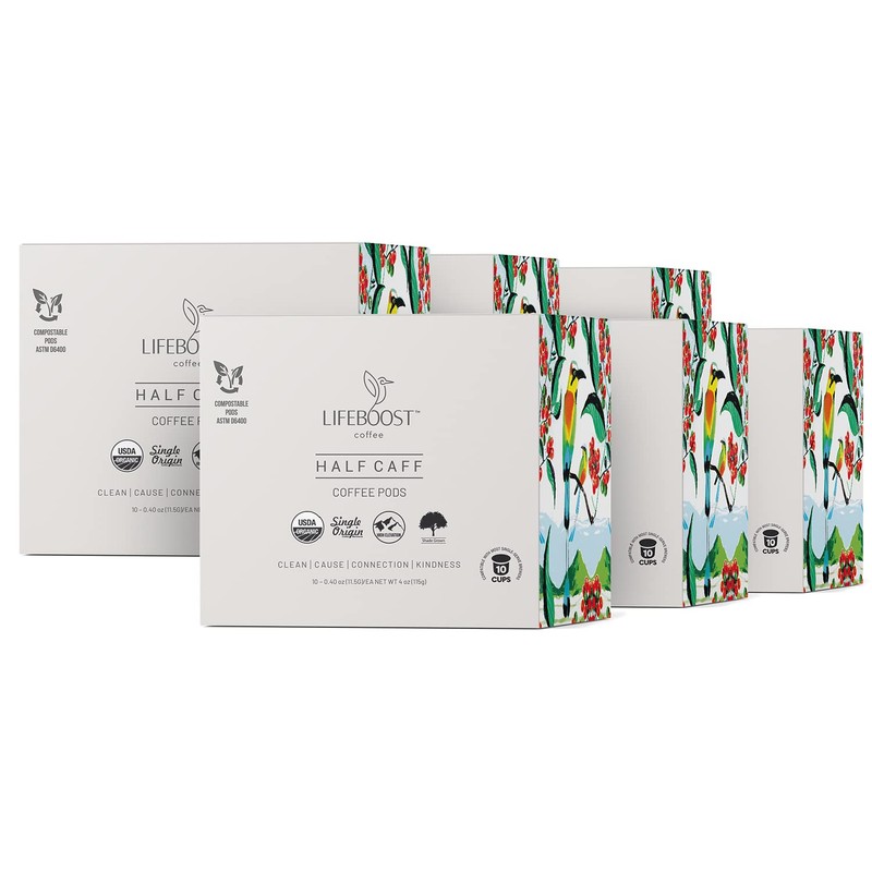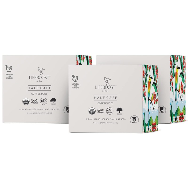 - Delicious, Ethically Sourced Coffee: You've tried the rest, now buy the best; Lifeboost Non-Gmo organic half caff coffee kcups are low in acid but high in flavor; The beans are sun dried, and spring water washed; The result is pure, natural coffee derived straight from nature