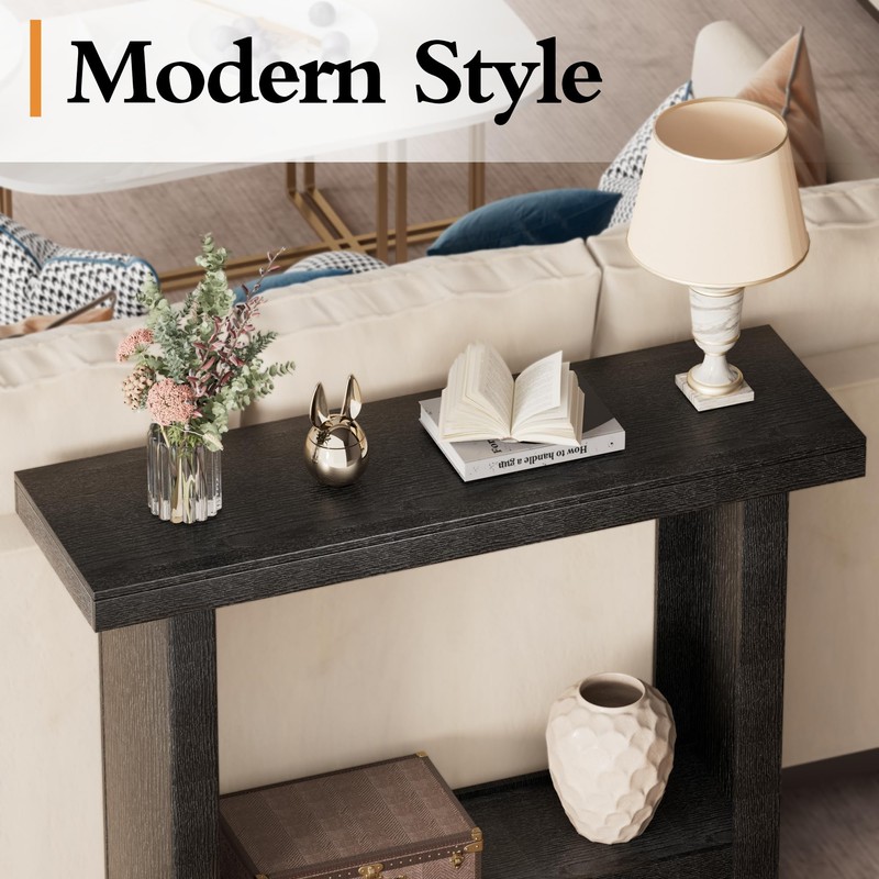 LIFECHOVY Modern Console Tables with Storage, Narrow Entryway Table for Hallway, Behind The Couch Sofa, Entrance Table with Shelves for Living Room, Foyer, Black