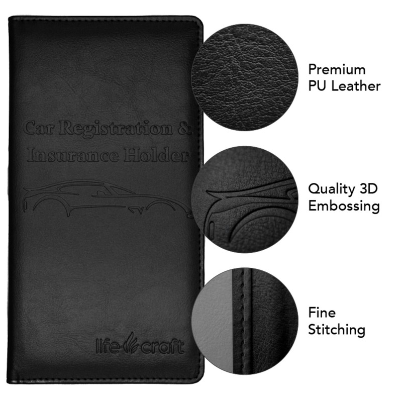 Lifecraft Insurance Registration Document Holder for Glove Box Compartment Organizer Auto Drivers License, ID and Cards - Premium PU Leather Vehicle Magnetic Information Cover Wallet (Midnight Black)