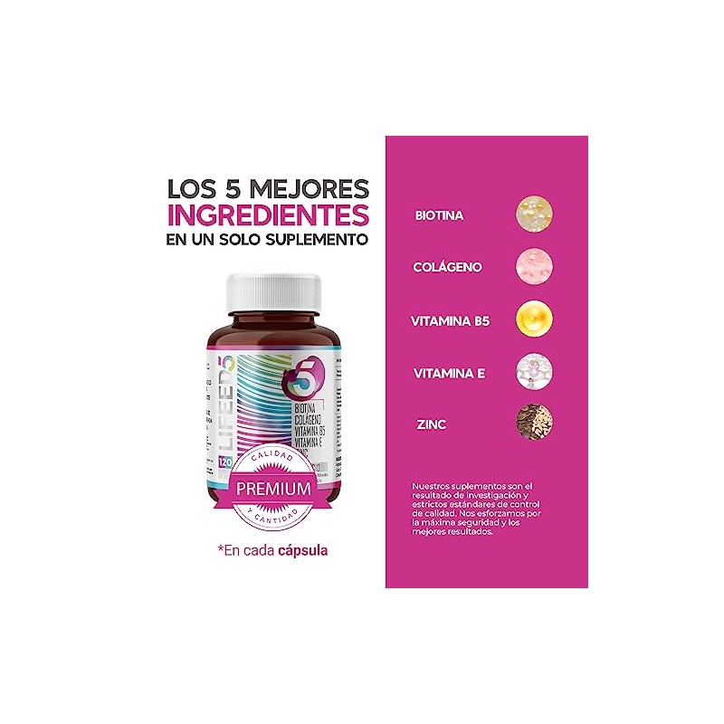 LIFEED - LIFEED Biotina, Colageno Hidrolizado Puro, Vitamina E, Vitamina B5 y Zinc | Suplemento Multivitaminico Mujer y Hombre | Cabello, Piel y Uñas | 120 Cápsulas | Vitaminas para el Cabello. ⭐ Calidad premium certificada con excelentes reseñas. Diseño ergonómico y funcionalidad excepcional. 🎯 Producto más buscado del mes. Ideal para quienes buscan lo mejor en calidad y estilo. Producto auténtico con satisfacción total asegurada. ¡No te quedes sin el tuyo y aprovecha esta oportunidad única!