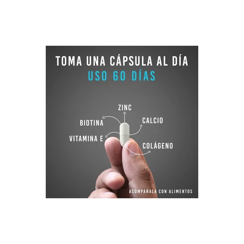 • Ingredientes Principales: Biotina, Colágeno Hidrolizado, Vitaminas E, D, C, A, B5, Calcio, Zinc