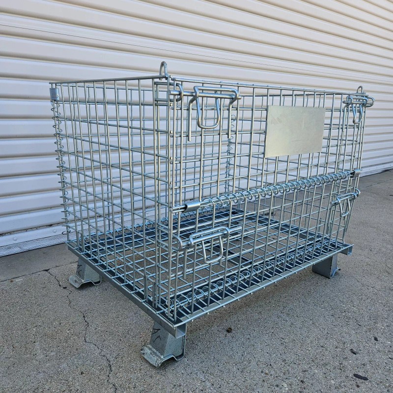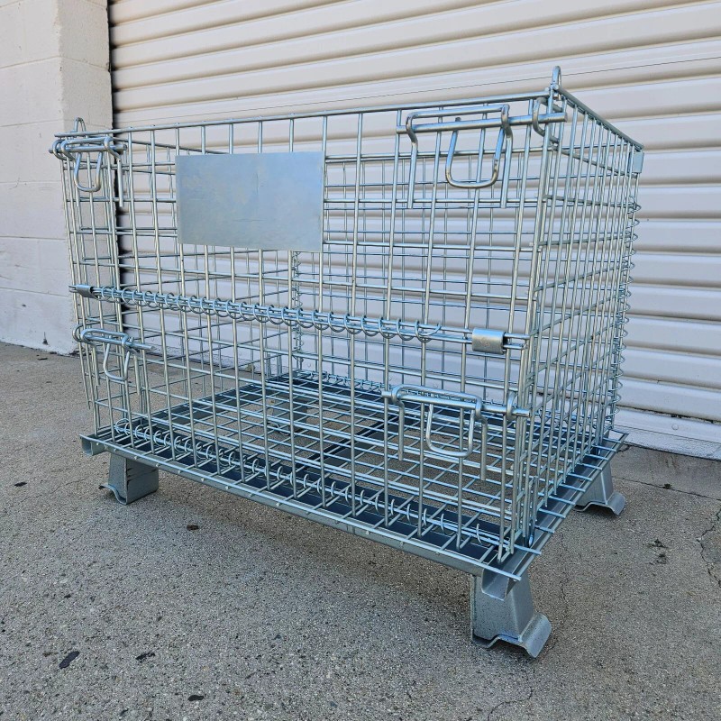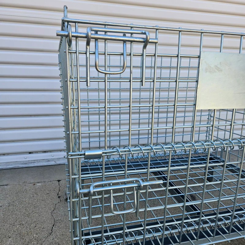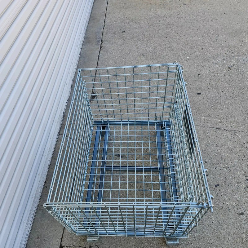 - One piece heavy-duty container features wire mesh arc-welded to a channel formed steel base