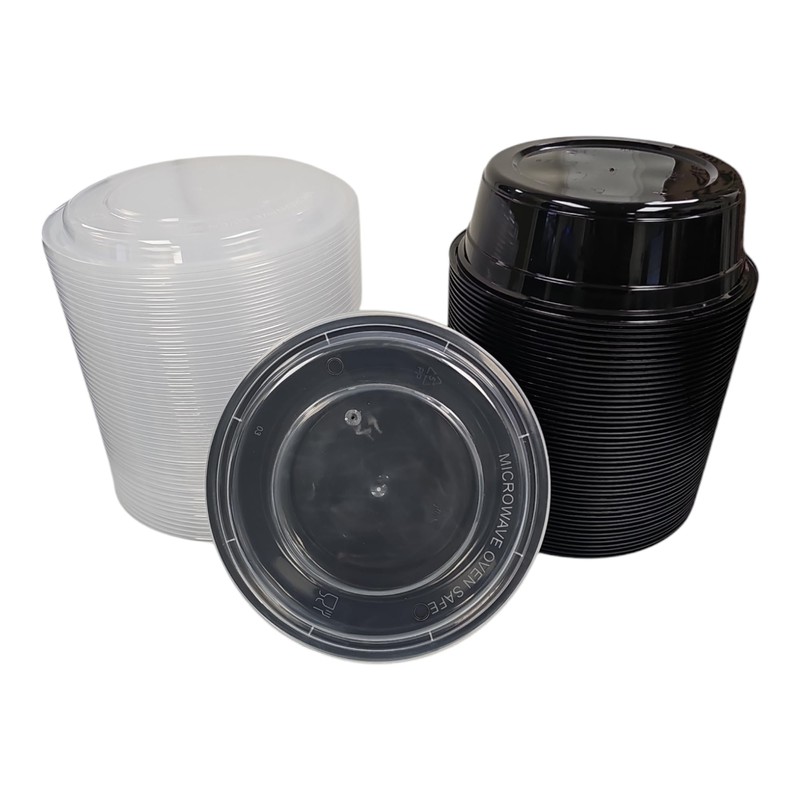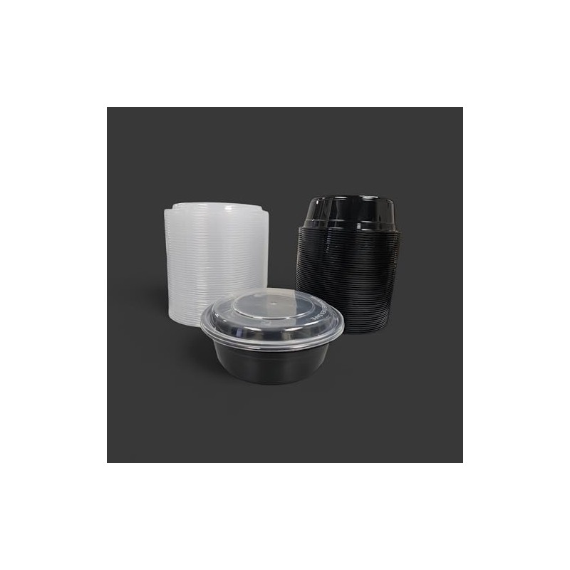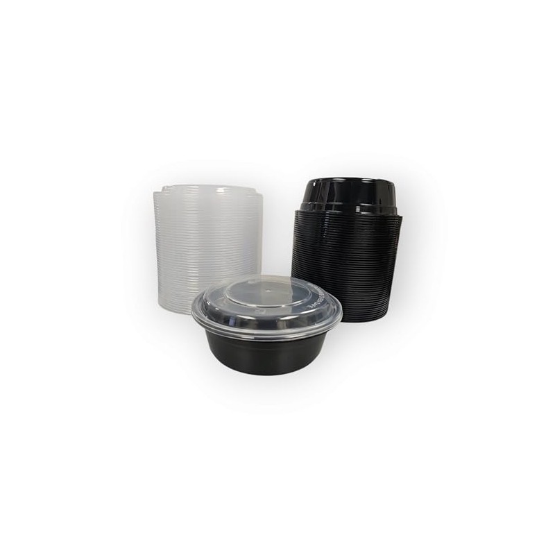 LIFEGUARD 32 oz Microwavable Round Black Container with Clear Lid, 50 Complete Sets