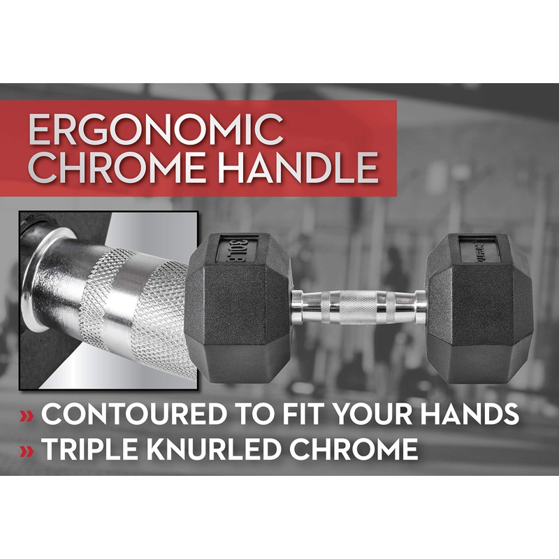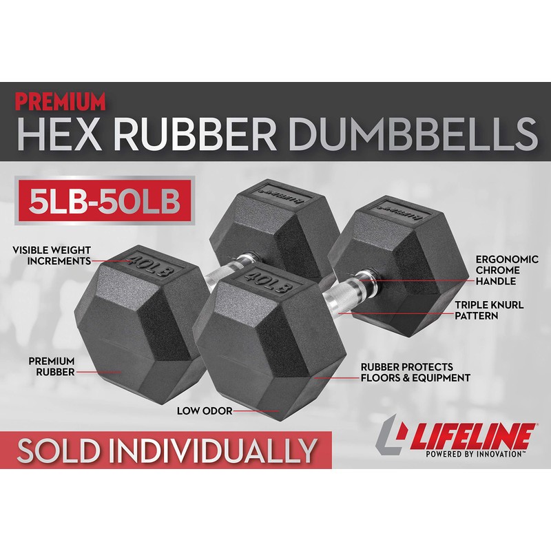 - The Lifeline Hex rubber dumbbells are sleek, stylish and versatile and available in weights from 5lbs to 50lbs